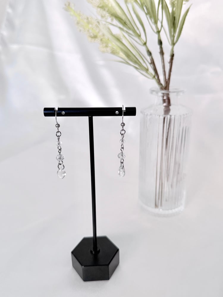 Silver earrings made with hypoallergenic, tarnish and rust-free stainless steel metal and glass beads. Earring backs can be converted to clip-ons if requested!