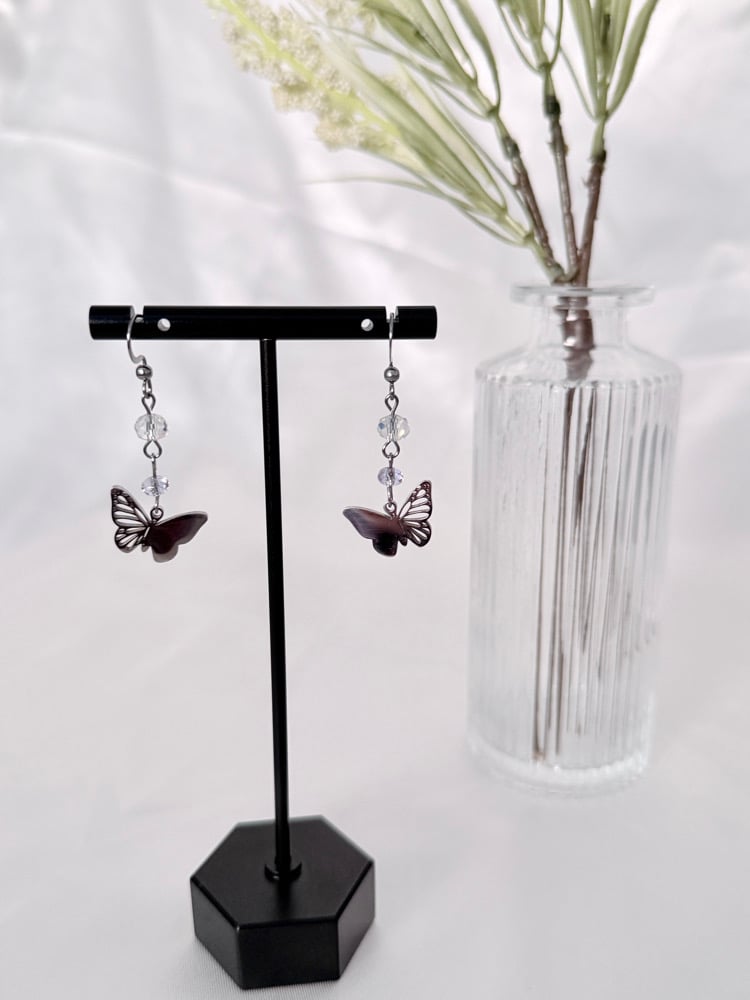 Silver earrings made with hypoallergenic, tarnish and rust-free stainless steel metal and glass beads. Earring backs can be converted to clip-ons if requested!